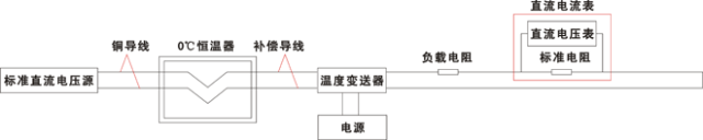 1.2上图中的热电偶补偿线采用测量热电偶对应的补偿线。用毫伏信号发生器模拟热电偶信号;冰容器处于冰和水的混合状态,冷端温度保持在0℃..