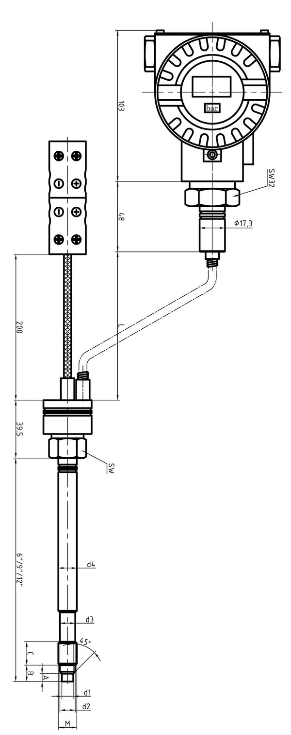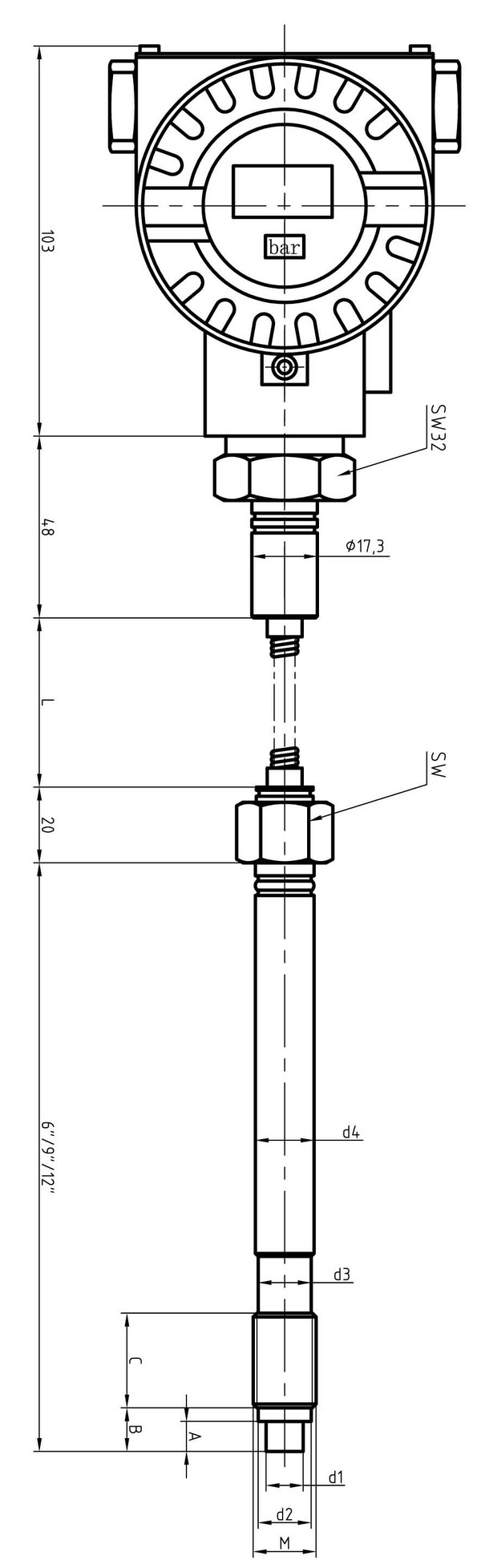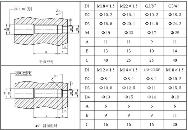 工艺连接:1/2”-20 UNF,M14× 1.5,M18× 1.5,G3/4(客户定义)